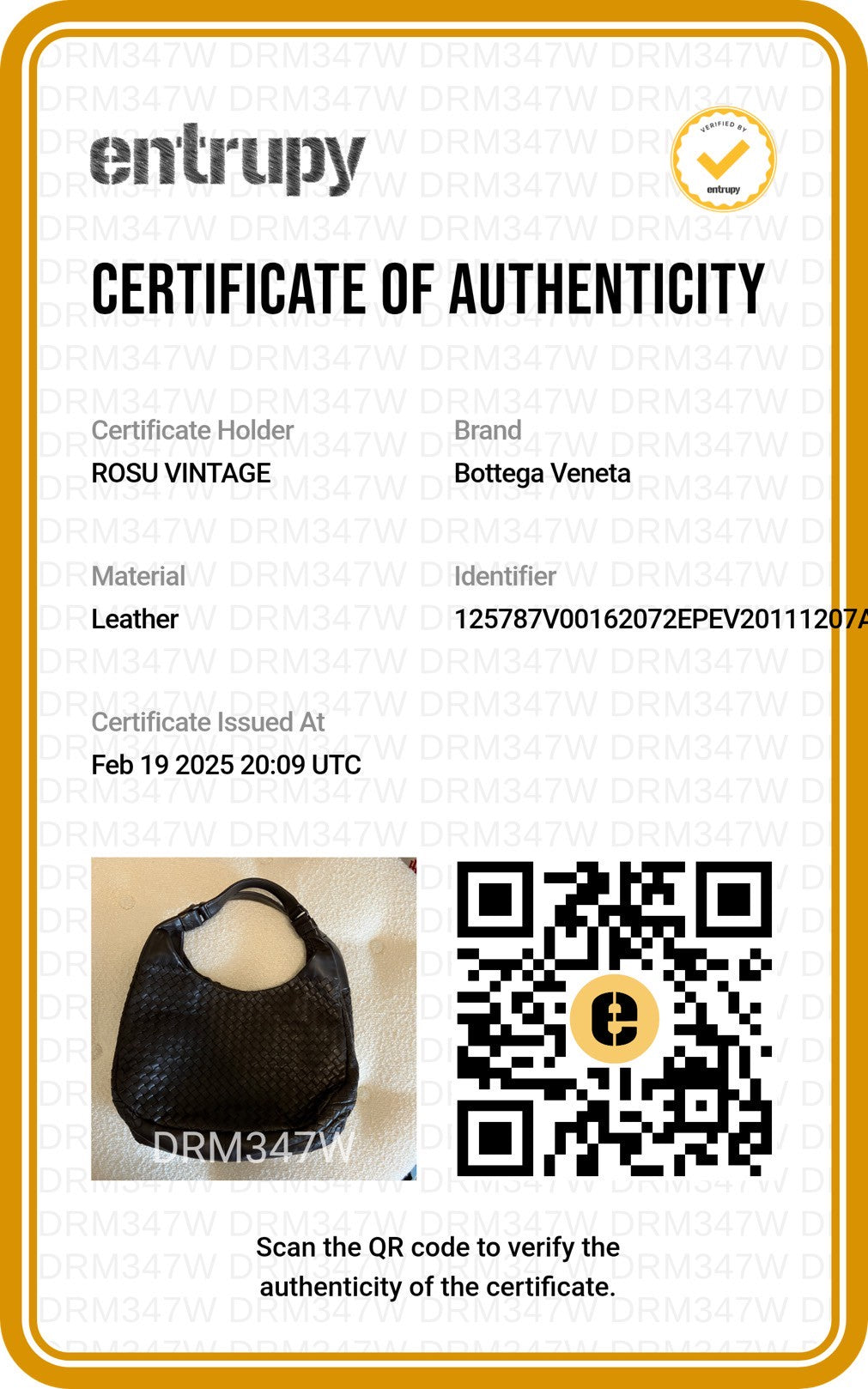 To offer peace of mind for every purchace, Rosu Vintage partners with Entrupy. A certificate of authenticty will come with each purchase.